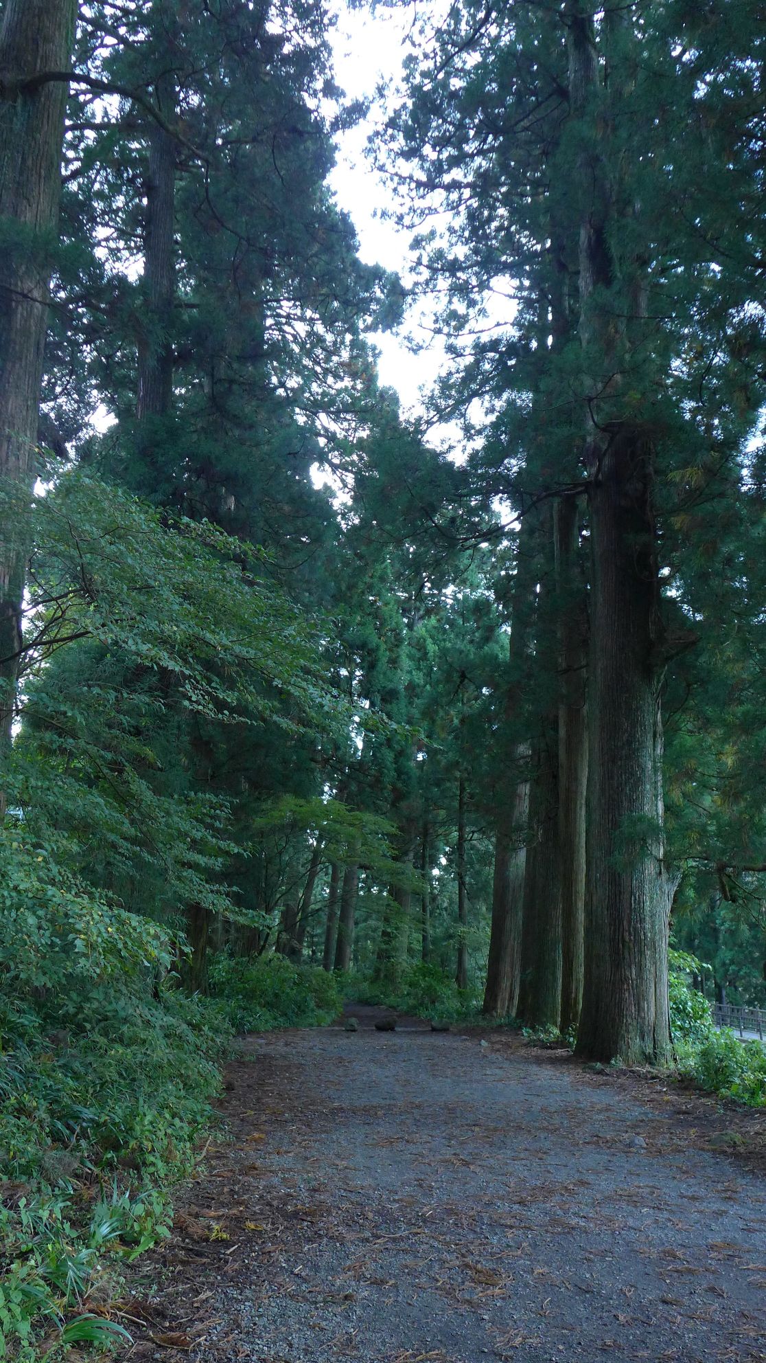 元箱根から箱根関所までは、旧東海道が保存道として残されている。いかにもそれらしい杉の巨木の間を歩いて、関所まで向かったのだが、昔は東海道でもこんなに狭かったのかと思うくらいの道幅で、せいぜい馬が行き違えるくらいだった。
