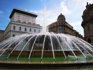 ホテルの場所が、翌日のチンクエテッレや翌々日のトリノ移動を見込んだ利便性の場所なので、観光エリアであるフェッラーリ広場やプリンチペ駅とは離れている。まずはATMでユーロを下ろし、コロンブスの家(のあったあたりにある18世紀の建物)に立ち寄って、フェッラーリ広場へと向かう。