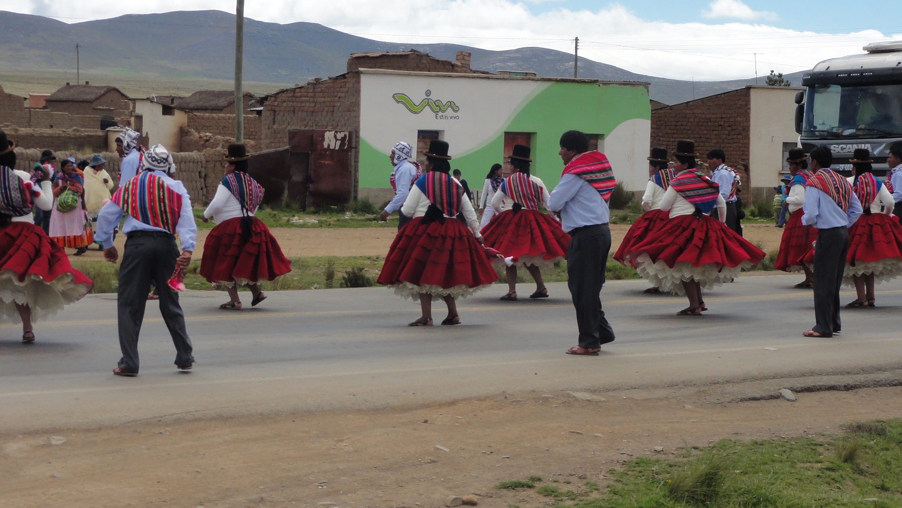 相方はここで、地元の人が主に風呂敷に使う用の、手織りの布を買っていた。それまで、ボリビアーノの単位だとせいぜい30とか50とかしか聞かなかったのに、その布は180ボリビアーノとずいぶん高かったので、へー!と思ったのだが、よく考えたら2,500円くらいなので、全く高くなかった。