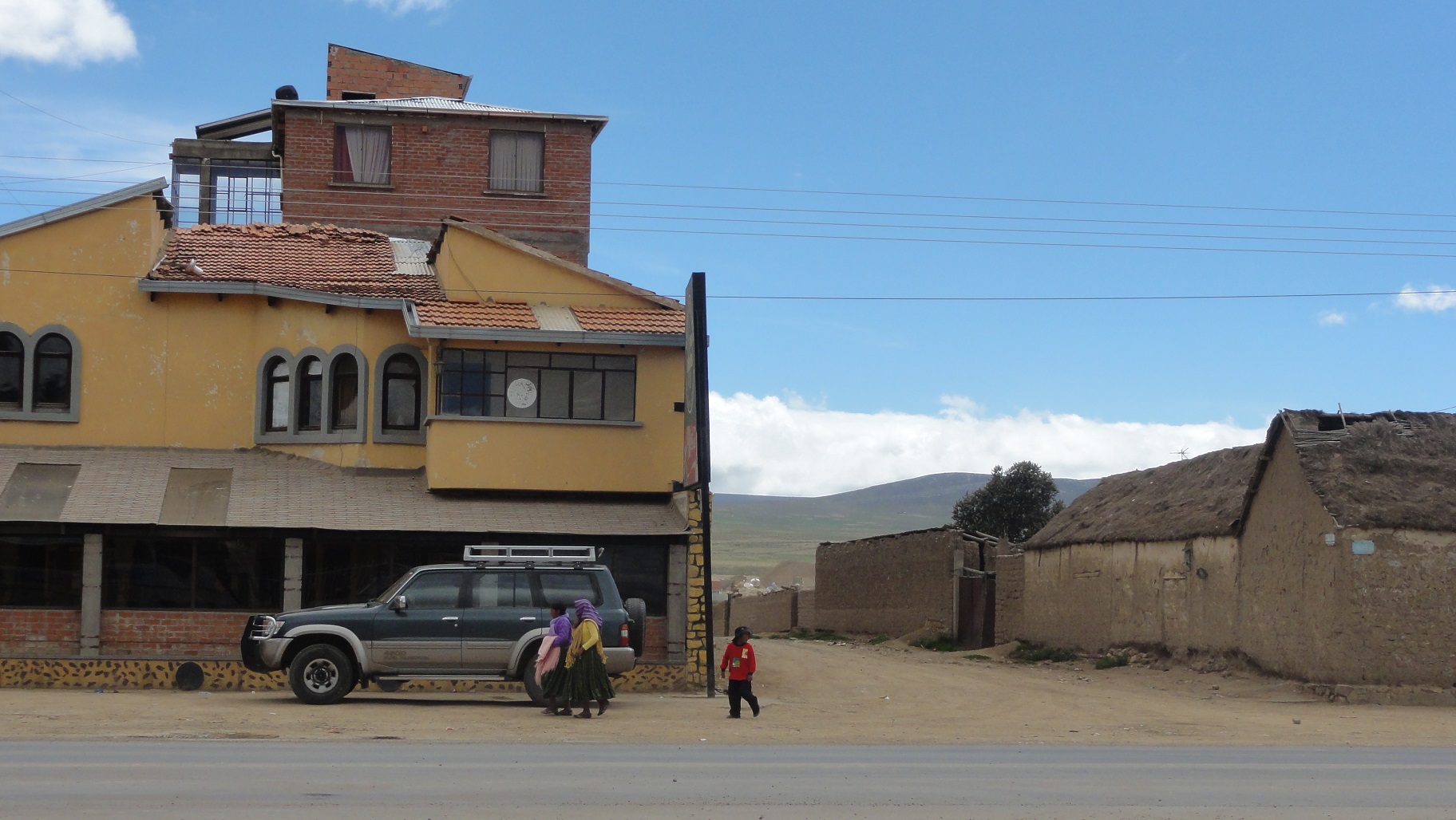そうこうするうちに、やっと4WDに乗り継ぐ小さい町に着いた。もう3時くらいで、6時間以上かかってたように思う。